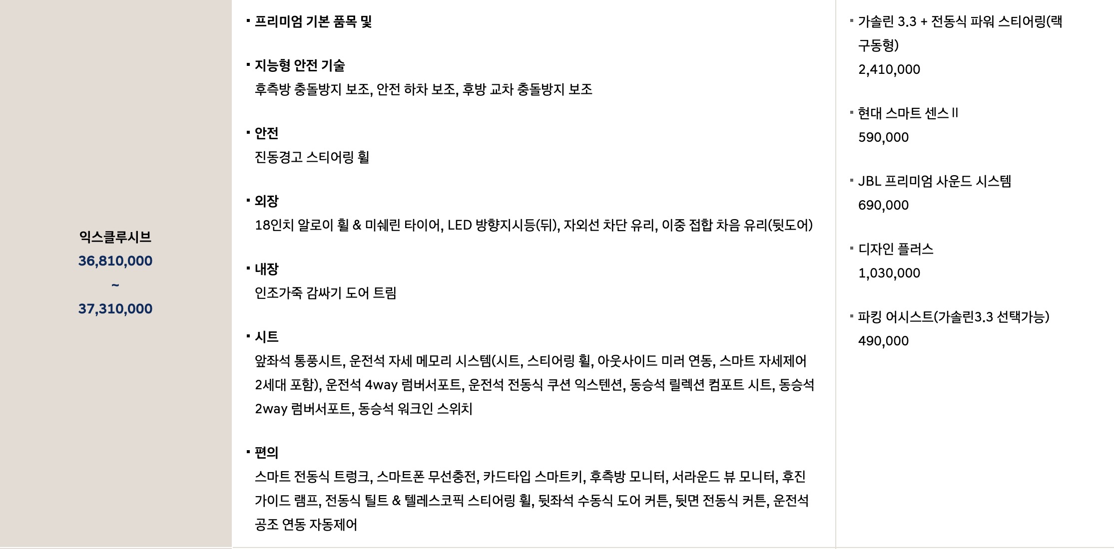 익스클루시브가 3700 만원정도 부터 시작하고 있습니다.