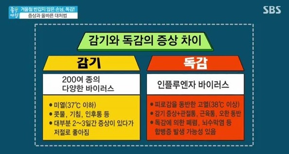 독감은 이와 다르게 선 증상 없이 고열이 난다고 합니다.