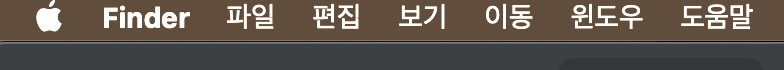Finder 창을 선택하면 사과 모양 메뉴바에 Finder 라고 변경이 되면서 파일 / 편집 / 보기 / 이동 / 윈도우 / 도움말 이 뜹니다.