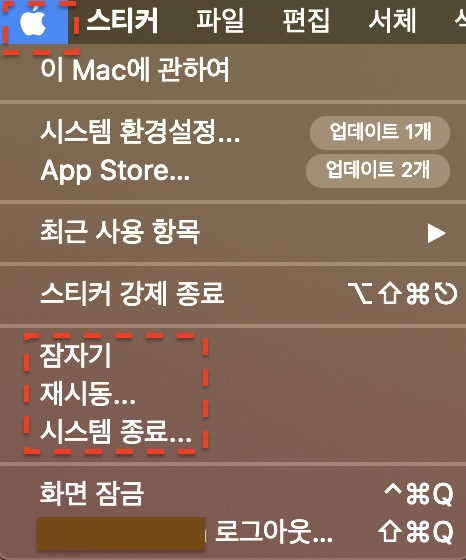 재시동과 시스템 종료는 그럼언제 사용할까요? 제목과 같이오래사용하지 않을 경우 사용하시면 됩니다. 맥 OS 가 윈도우에 비해 상당히 안정스러운 것은 맞습니다. 그러나 맥에서도 가끔은 오류가 일어날 때가 있습니다. 액정이 안켜진다든지 키보드가 좀 이상하다 하는 때 말입니다.