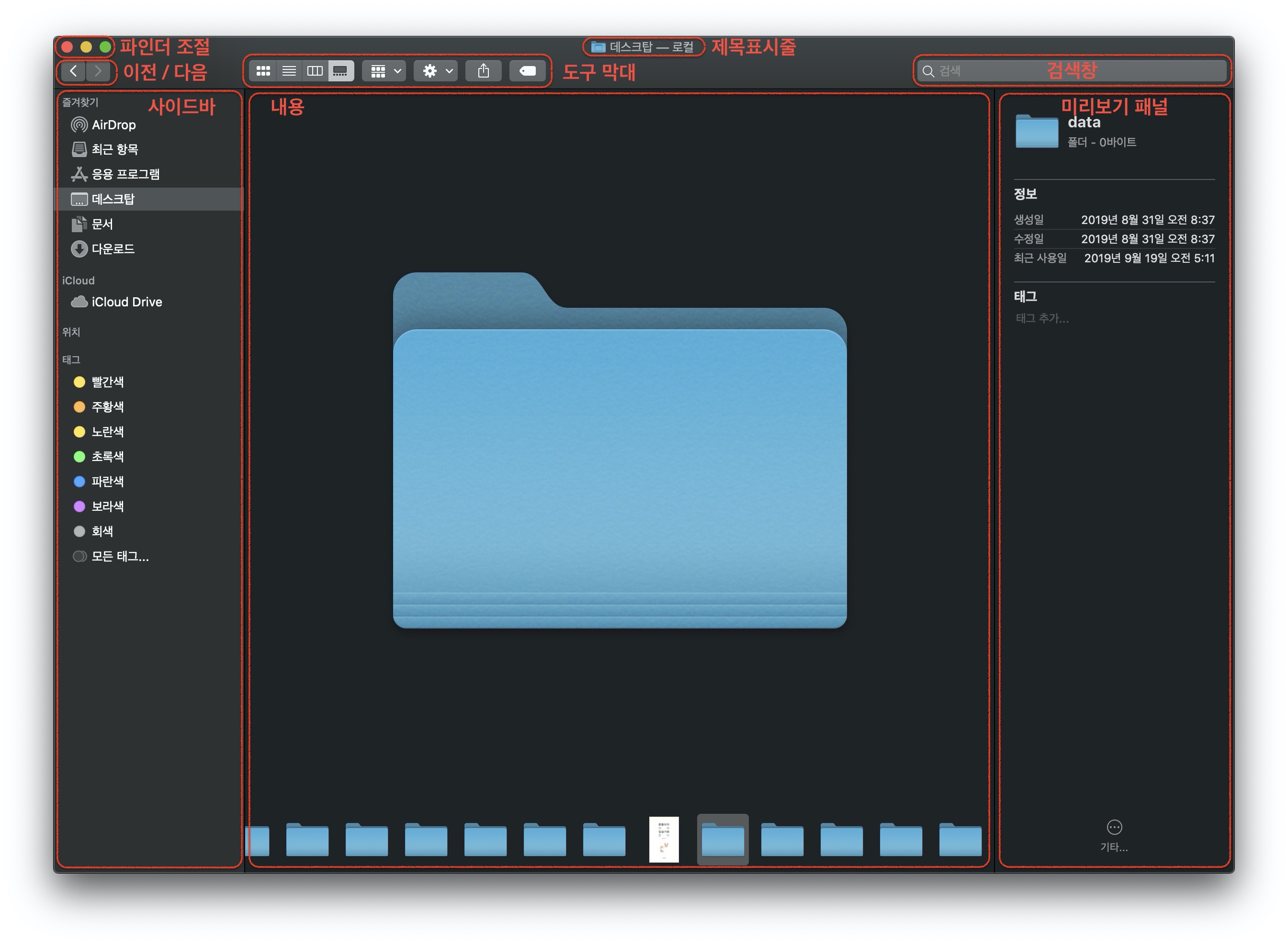 - 제목 표시줄 : 선택한 finder 윈도우의 이름 표시