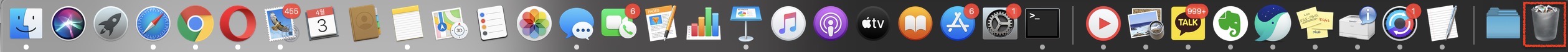 - 두 번째 사진의 독 처럼 가장 우측에 휴지통이 있는데 그 휴지통까지 드레그 한다.